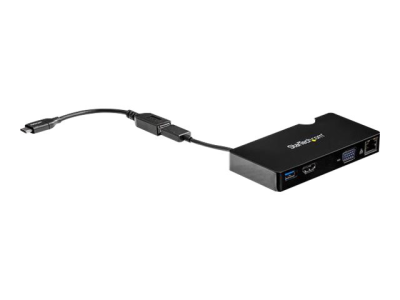 Cet adaptateur multiport USB 3.0 est livré avec un câble adaptateur USB-C vers USB-A, vous permettant ainsi de l'utiliser avec un ordinateur portable USB-A ou USB-C. Utilisez-le comme station d'accueil PC portative pour étendre la connectivité de votre ordinateur portable, en ajoutant des ports HDMI et VGA, un port USB-A et un port Gigabit Ethernet.