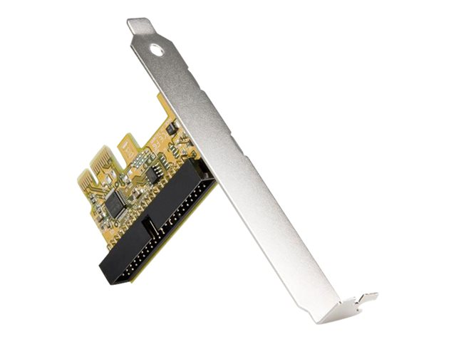 La carte adaptateur PCI Express IDE est une solution double profil complète. Elle comprend également un support standard et faible encombrement pour pouvoir être installée dans les systèmes compacts ou Slimline.