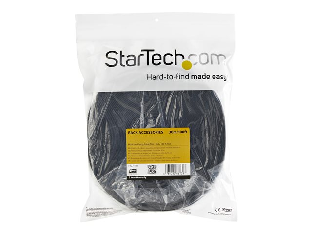 StarTech.com Attaches de câble à boucles auto-agrippantes en vrac - Rouleau de 30,4 m - Sangle pour câbles sur mesure - Noir (HKLP100) - Rouleau d'attache de câble - 30.4 m - pour P/N: CMHOOK1U, HKLP100BL, HKLP100GN, HKLP100RD, HKLP100YW