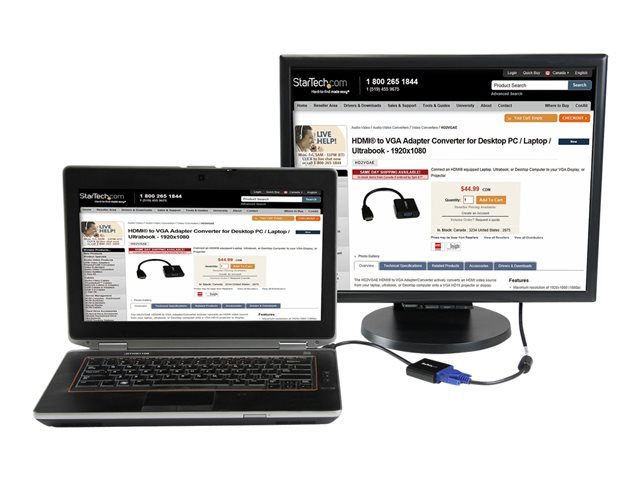StarTech.com Adaptateur / Convertisseur HDMI vers VGA pour ordinateur de bureau / ordinateur portable / Ultrabook - M/F - 1920x1080 - Noir - High Speed - adaptateur vidéo - HDMI mâle pour HD-15 (VGA) femelle - 24.5 cm - noir - support 1080p, actif - pour P/N: DK30C2DPEPUE, DK30C2DPPDUE, DK31C3HDPD, DK31C3HDPDUE, SV211HDUC, SV221HUC4K HD2VGAE2