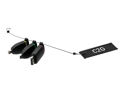 La prise de câble universelle se fixe directement dans le câble d'écran HDMI dans la salle, ce qui garantit que les adaptateurs se trouvent toujours à portée de la main. L'anneau adaptateur se glisse sur le connecteur HDMI, au besoin, et à l'écart en dehors d'usage, ce qui réduit les contraintes exercées sur le câble HDMI et l'encombrement sur le bureau. La butée de câble en option se monte sur les câbles HDMI de 5 à 10 mm de diamètre pour empêcher les adaptateurs de glisser trop loin sur le câble.