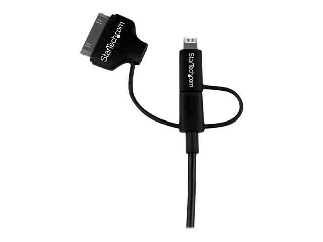 StarTech.com Câble combo USB vers Lightning / Dock 30 broches / Micro USB de 1 m - Noir (LTADUB1MB) - Câble de chargement / de données - Apple Dock, Micro-USB de type B, Lightning mâle pour USB mâle - 1 m - double blindage - noir - pour P/N: ST4CU424, ST4CU424EU, ST4CU424UK, ST8CU824