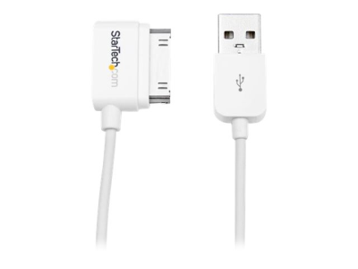 StarTech.com Câble connecteur Apple Dock 30 broches à angle droit vers USB 1 m - Cordon de charge / sync pour iPad iPhone iPod - Blanc - Câble de chargement / de données - USB (M) pour Apple Dock (M) - 1 m - blindé - blanc - connecteur incliné - pour Apple iPad/iPhone/iPod (Apple Dock) USB2ADC1MR