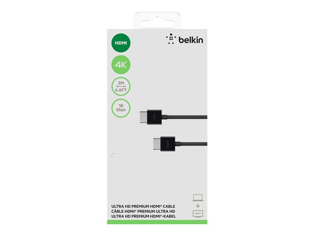 Belkin Premium Series - Câble HDMI - HDMI mâle pour HDMI mâle - 2 m - support 4K AV10168BT2M-BLK