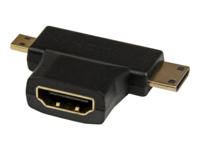 StarTech.com Adaptateur HDMI (Femelle) vers HDMI Mini (Mâle) / HDMI Micro (Mâle) - Noir, Plaqués Or - Adaptateur HDMI - HDMI mini, HDMI micro (M) pour HDMI (F) - 3.16 cm - noir - pour P/N: HDMM30CM