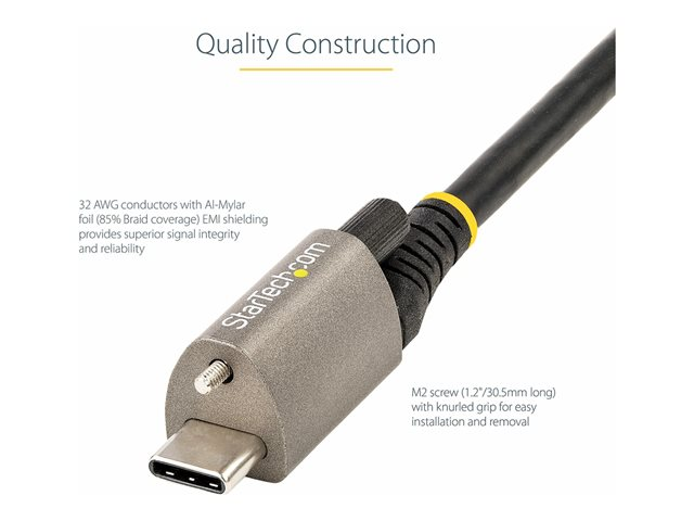 StarTech.com Câble USB C 10Gbps 50cm à Verouillage par Vis Supérieure - Câble USB 3.1/3.2 Gen 2 Type-C - 100W/5A Power Delivery, DP Alt Mode, Cordon USB-C à Vis Unique (USB31CCTLKV50CM) - Câble USB - 24 pin USB-C (M) droit/bloquant pour 24 pin USB-C (M) droit - USB 3.2 Gen 2 / DisplayPort 1.4 /Thunderbolt 3 - 50 cm - support 8K - gris, noir