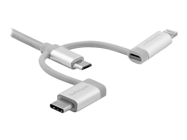 StarTech.com Câble USB multi connecteur de 2 m - Lightning, USB-C, Micro USB (LTCUB2MGR) - Kit câble USB - argent