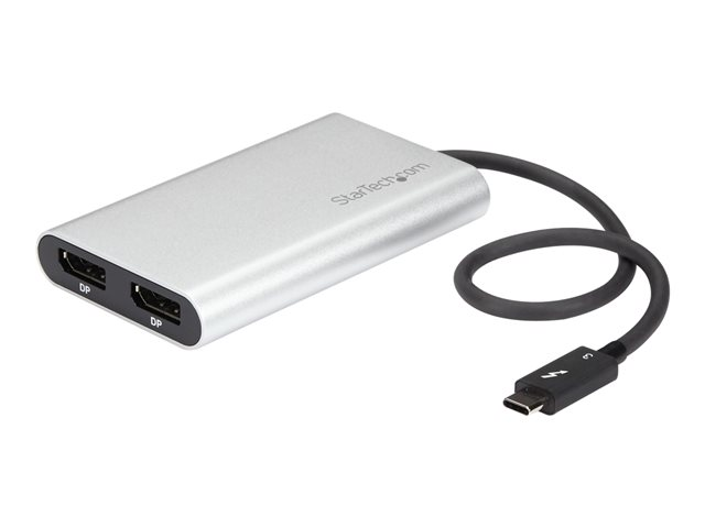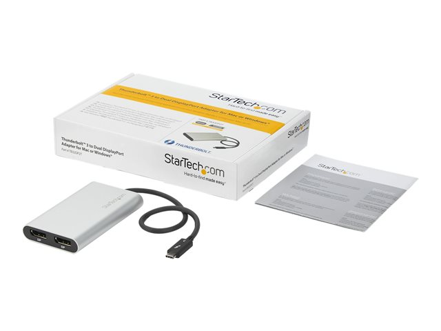 Cet adaptateur Thunderbolt 3 hautes performances vous permet de raccorder deux écrans DisplayPort 4K 60 Hz à votre ordinateur Windows ou Mac par le biais d'un seul port Thunderbolt 3, ou de connecter votre port Thunderbolt 3 à un écran 5K 60 Hz au moyen de deux câbles DisplayPort. L'adaptateur vidéo Thunderbolt est compatible avec les systèmes informatiques prenant en charge Thunderbolt 3, comme les modèles de MacBook Pro, Dell Precision et Dell XPS. Thunderbolt 3 est un protocole qui utilise le connecteur USB-C , mais votre système informatique doit prendre en charge Thunderbolt 3 pour que l'adaptateur fonctionne comme prévu. Si vous connectez l'adaptateur à un port USB-C qui ne prend pas en charge Thunderbolt 3, l'adaptateur ne fonctionnera pas.