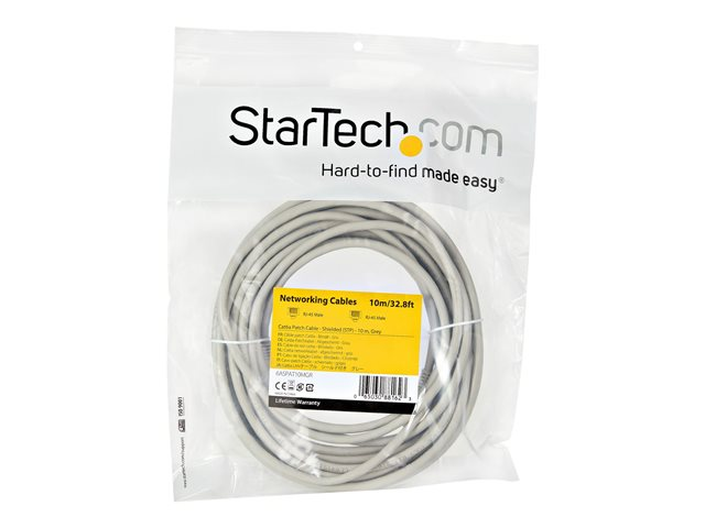 StarTech.com 10m CAT6A Ethernet Cable, 10 Gigabit Shielded Snagless RJ45 100W PoE Patch Cord, CAT 6A 10GbE STP Network Cable w/Strain Relief, Grey, Fluke Tested/UL Certified Wiring/TIA - Category 6A - 26AWG (6ASPAT10MGR) - Cordon de raccordement - RJ-45 (M) pour RJ-45 (M) - 10 m - STP - CAT 6a - moulé, sans crochet - gris