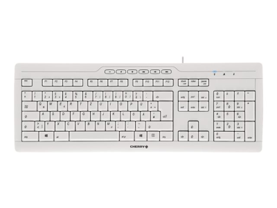 CHERRY STREAM 3.0 est un travailleur non-stop. Spécialement développé pour une utilisation intensive au bureau : Marquage des touches au laser très résistant à l'usure, frappe à effet de " chuchotement ", protection contre les projections d'eau et design ultra-plat et ergonomique.