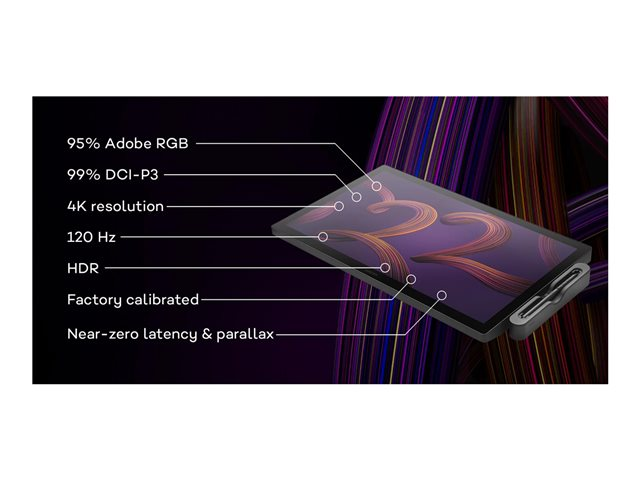 | Caractéristiques | Stylo sensible à la pression, 8 ExpressKeys, taux de balayage tactile de 120 Hz, VESA 100 x 100 mm, sans batterie, Prise en charge du HDR Gamma, Pantone Validated, détection de l'inclinaison, 99% DCi-P3, 95% Adobe RGB |