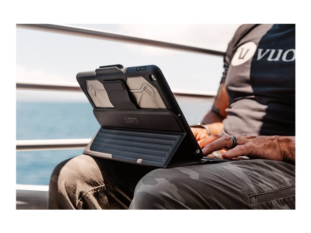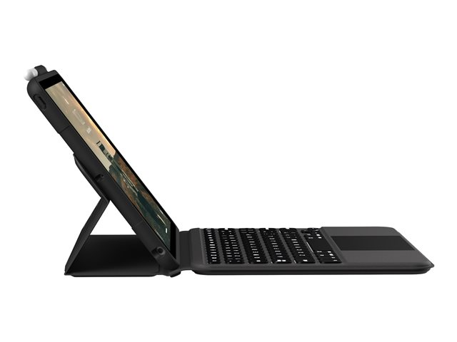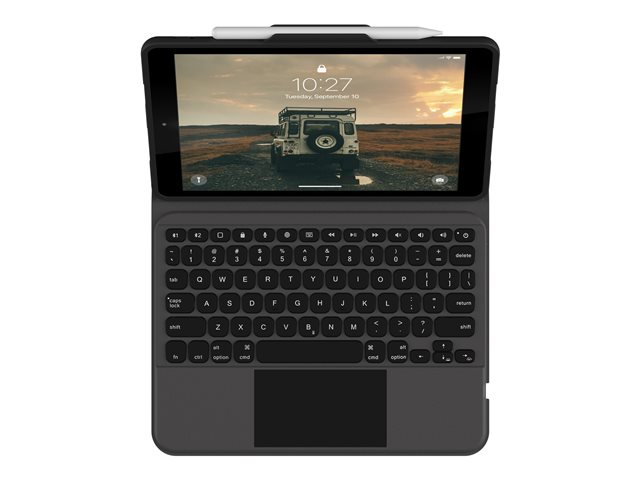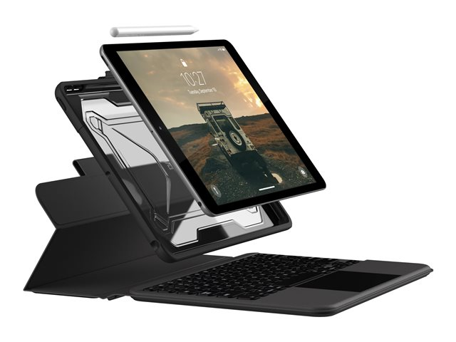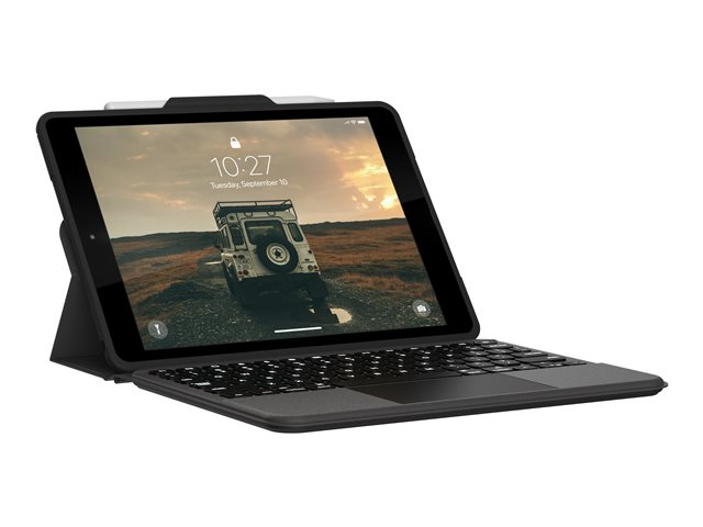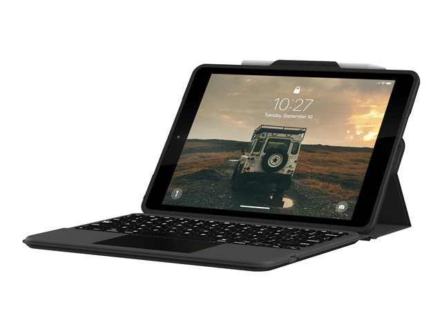 UAG Rugged Bluetooth Keyboard w/Trackpad (French) - Clavier et étui (boîtier de clavier) - avec trackpad - rétro-éclairé - Bluetooth - Français - noir, cendre clavier, noir, cendre étui - Pour la vente au détail - pour Apple 10.2-inch iPad (7ème génération, 8ème génération, 9ème génération)