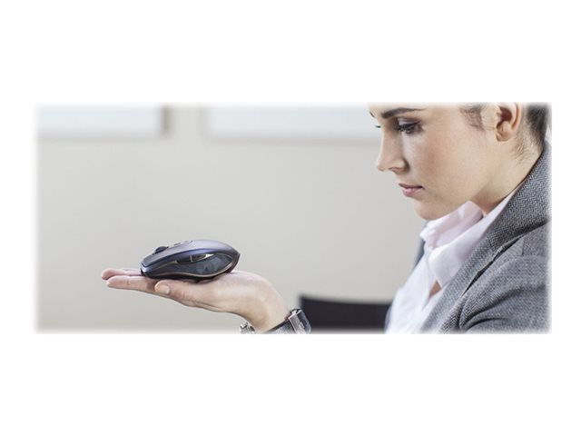 Grâce à la technologie de suivi Logitech Darkfield Laser Tracking, votre souris est compatible avec la plupart des surfaces, même en verre. Le monde devient votre tapis de souris. Vous pouvez laisser le récepteur Logitech Unifying branché sur votre ordinateur portable. Vous pouvez même ajouter d'autres dispositifs. Branchez-le. Oubliez-le. Ajoutez d'autres dispositifs. En savoir plus sur le récepteur Logitech Unifying. La forme compacte et ergonomique associée aux boutons actionnés par le pouce assurent confort et contrôle où que vous soyez.