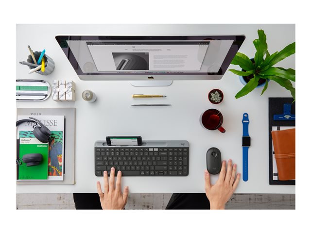Logitech Pebble M350 - Souris - optique - 3 boutons - sans fil - Bluetooth, 2.4 GHz - récepteur sans fil USB - graphite
