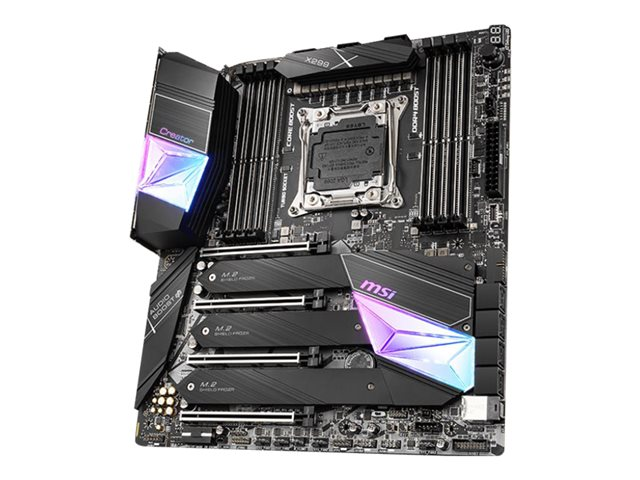 La Creator X299 arbore un look unique inspiré de la pureté du cristal et offre fonctionnalités pensées pour répondre aux créateurs et designers. Elle propose notamment la dernière norme USB 3.2 Gen2x2 et la solution 10G LAN, la norme Wi-Fi 6, des slots Turbo M.2 avec Shield Frozr, et les technologies Core Boost, Audio Boost 4 et Nahimic. Ses cartes additionnelles ThunderboltM3 et M.2 Xpander-Aero apportent elles aussi des performances supplémentaires non négligeables.