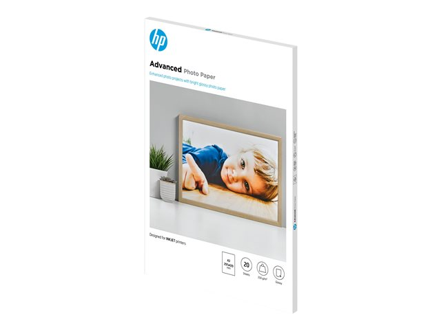 HP Advanced Photo Paper - Brillant - A3 (297 x 420 mm) - 250 g/m² - 20 feuille(s) papier photo - pour ENVY Inspire 7920; Officejet 7000 E809, 7510, 76XX; Officejet Pro 77XX