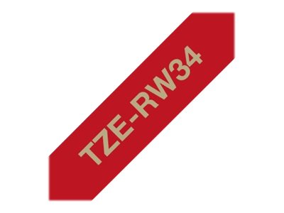 Brother TZe-RW34 - Or sur rouge vin - Rouleau (1,2 cm x 4 m) 1 cassette(s) bande de ruban - pour Brother PT-D600, H110; P-Touch PT-D450; P-Touch Cube PT-P300; P-Touch Embellish PT-D215