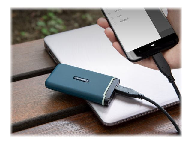 Si véloce que c'est stupéfiant! Le SSD portable ESD350C de Transcend tient dans la paume de votre main. Il est doté d'un élégant boîtier durable en caoutchouc silicone à la fois robuste et résistant aux chocs, d'une interface USB 3.1 Gen 2 pour un haut taux de transfert et d'un port USB Type-C, vous offrant des vitesses jamais vues auparavant pouvant atteindre 1050 Mo/s.