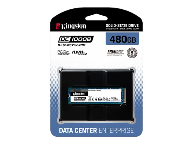 Kingston Data Center DC1000B - SSD - chiffré - 480 Go - interne - M.2 2280 - PCIe 3.0 x4 (NVMe) - AES 256 bits - Self-Encrypting Drive (SED)