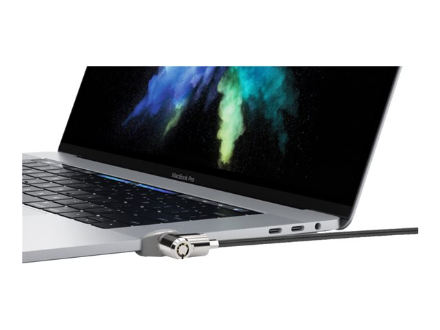 Solution de sécurité de verrouillage MacBook Pro de pointe, adaptateur à profil bas compatible avec les verrous de câble T-Bar standard, fonctionne pour les modèles de 15" et de 13" avec quatre ports Thunderbolt 3, installation facile et rapide, compatible avec les modèles MacBook Pro avec des fentes de ventilation sur les côtés.