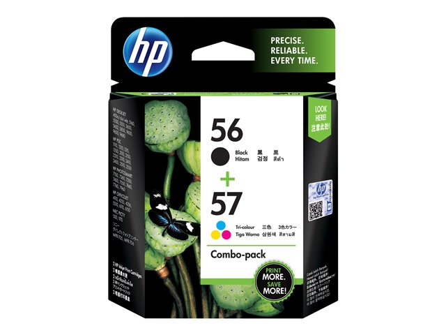 Les cartouches d'impression des kits Combo HP 56/57 réduisent les coûts d'impression et font gagner du temps. Obtenez toute l'encre noire et trois-couleurs dont vous avez besoin pour imprimer des photos et des graphiques fabuleux et durables, et des documents professionnels avec du texte noir de qualité laser.