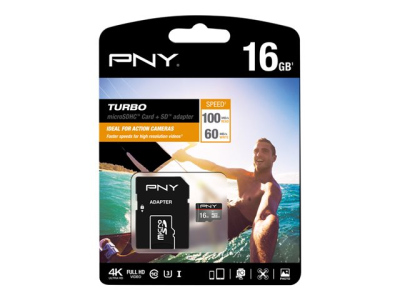 PNY Turbo - Carte mémoire flash (adaptateur microSDHC - SD inclus(e)) - 16 Go - UHS-I U3 / Class10 - microSDHC UHS-I