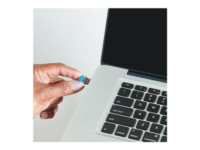 Une fois insérée dans un port USB, la clé NANO USB Store 'n' Stay de Verbatim. Elle est en effet tellement petite et discrète que vous pouvez la laisser en place presque tout le temps.