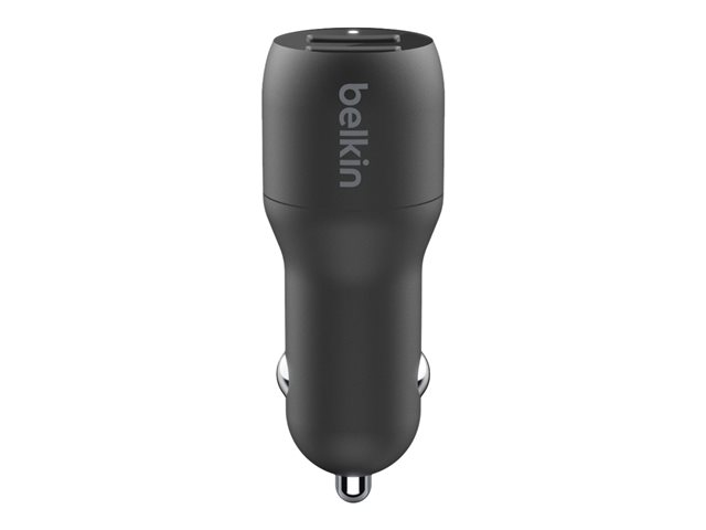 Belkin BOOST CHARGE Double chargeur - Adaptateur d'alimentation pour voiture - 24 Watt - 4.8 A - 2 connecteurs de sortie (USB) - sur le câble : USB-C - noir CCE001BT1MBK