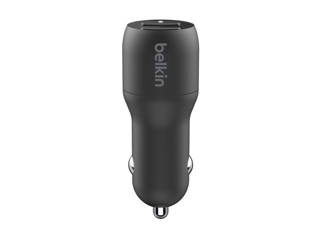 Belkin BOOST CHARGE Double chargeur - Adaptateur d'alimentation pour voiture - 24 Watt - 4.8 A - 2 connecteurs de sortie (USB) - sur le câble : Lightning - noir CCD001BT1MBK