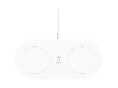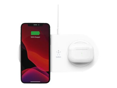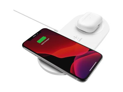 Belkin BOOST CHARGE Dual - Plot de charge sans fil + adaptateur secteur - 15 Watt - blanc - pour Apple iPhone 11, 11 Pro, 11 Pro Max, 8, 8 Plus, X, XR, XS, XS Max; Samsung Galaxy Note10, Note10+, S10, S10+, S10e