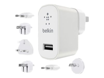 La possibilité de brancher vos appareils sur n'importe quelle prise électrique partout dans le monde est essentielle pour rester connecté en toute sécurité lorsque vous voyagez à l'étranger pour votre travail ou votre plaisir. Le kit de voyage international comprend un chargeur et 6 fiches interchangeables correspondant aux 6 formats les plus répandus dans le monde. Et avec 2,4 A d'intensité, vous bénéficiez d'une vitesse de charge optimale pour tous vos appareils quel que soit le pays où vous vous trouvez.