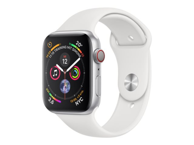 Apple Watch Series 4 (GPS + Cellular) - 44 mm - aluminium argenté - montre intelligente avec bande sport - fluoroélastomère - blanc - taille de bande 140-210 mm - 16 Go - Wi-Fi, Bluetooth - 4G - 36.7 g