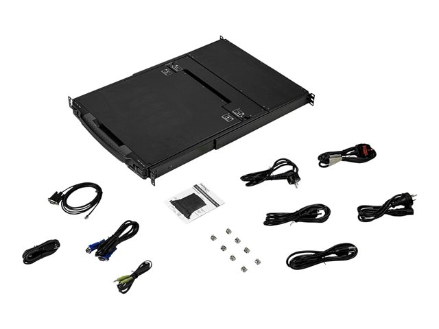 StarTech.com Console LCD de 17,3" 1080p HD à montage en rack 1U avec clavier américain - Interface VGA - Câble KVM inclus - Console KVM avec commutateur KVM - 1 ports - USB - 17.3" - rack-montable - 1920 x 1080 Full HD (1080p) @ 60 Hz - 250 cd/m² - 650:1 - 8 ms - 2xDVI-D, 2xVGA - noir - 1U