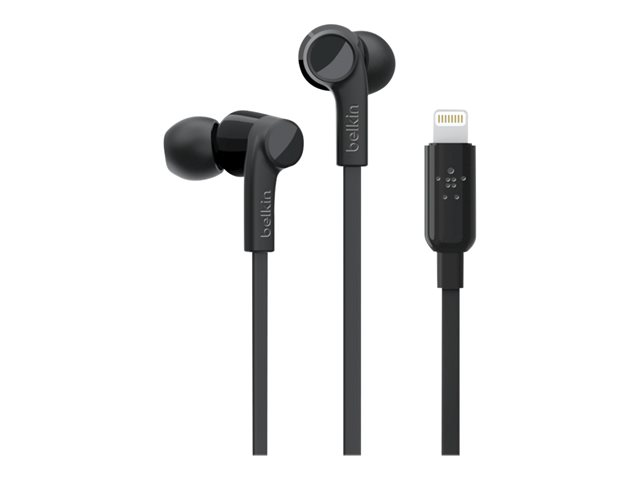 Belkin ROCKSTAR - Écouteurs avec micro - intra-auriculaire - filaire - Lightning - isolation acoustique - noir - pour Apple 10.5-inch iPad Pro; iPad mini 4; iPhone 7, 7 Plus, 8, 8 Plus, X, XR, XS, XS Max