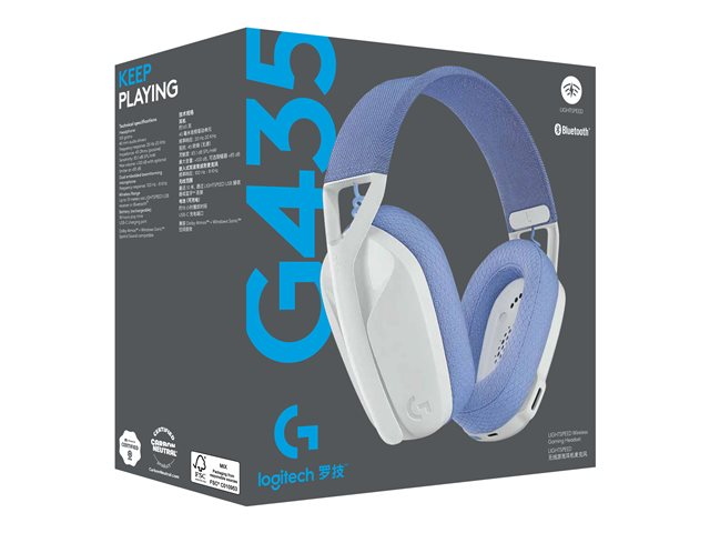Logitech Lightspeed G435 - Micro-casque - circum-aural - fréquence/Bluetooth radio de 2,4 GHz - sans fil - blanc - Certifié Discord