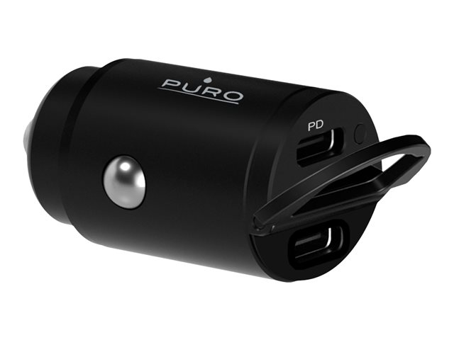Puro - Adaptateur d'alimentation pour voiture - 30 Watt - 3 A - PD - 2 connecteurs de sortie (2 x USB-C) - noir