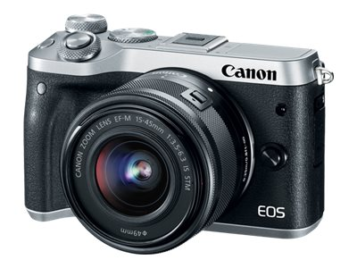 Canon EOS M6 - Appareil photo numérique - sans miroir - 24.2 MP - APS-C - 1080p / 60 pi/s - 8.3x zoom optique objectif EF-S 18 - 150 mm IS STM - Wi-Fi, NFC, Bluetooth - argent 1725C022