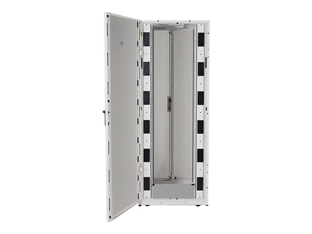 Large baie avec options avancées de gestion des câbles, pour applications serveur et réseau haute densité. Hauteur 42U permettant un passage par les ouvertures de porte.