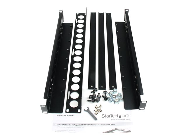 StarTech.com Rails 1U fixes - Universels - Rails pour rack serveur - 19" - Profondeur réglable - Rail de rack - noir - 1U - 19" - pour P/N: RK2433BKM, RK2537BKM, RK3236BKF, RK4236BKB, RK4242BK24, RK4242BK30, RKQMCAB12V2 UNIRAILS1U