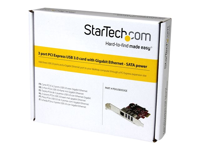 StarTech.com Carte PCI Express à 3 ports USB 3.0 et 1 port Gigabit Ethernet avec UASP - Adaptateur PCIe 3x USB 1x GbE - Adaptateur USB / réseau - PCIe 2.0 profil bas - USB 3.0 x 3 + 1000Base-T x 1
