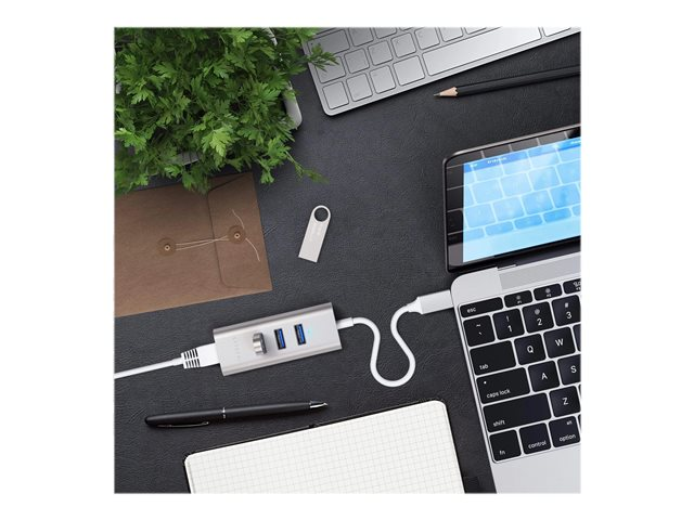 Satechi ST-TC2N1USB31AS - Concentrateur (hub) - 3 x SuperSpeed USB 3.0 + 1 x 10/100/1000 - de bureau ST-TC2N1USB31AS