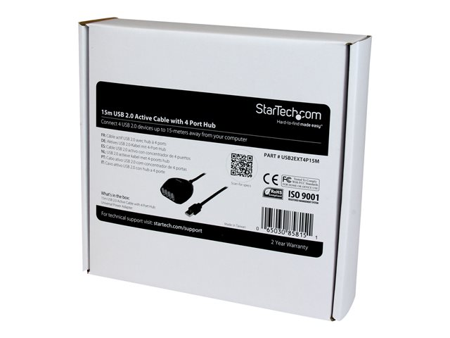 Le câble USB2EXT4P15M prend en charge la totalité de la bande passante USB 2.0 de 480 Mb/s et bénéficie de la garantie StarTech.com de 2 ans.