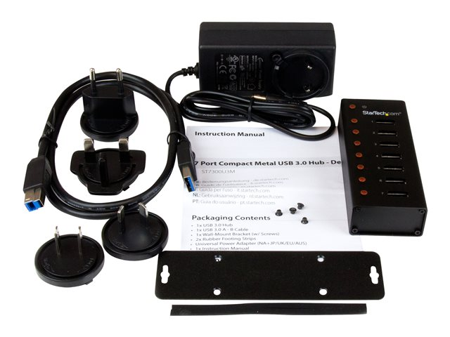 StarTech.com Hub USB 3.0 à 7 ports - Concentrateur USB à montage mural / sur bureau avec boîtier métallique - Hub USB 3.0 portable - Concentrateur (hub) - 7 x SuperSpeed USB 3.0 - de bureau, fixation murale - pour P/N: BNDTBUSB3142, PEXUS313AC2V, PEXUSB311A1E, PEXUSB312A2, PEXUSB314A2V, PEXUSB314A2V2 ST7300U3M