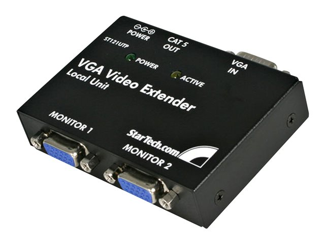 L'extendeur vidéo VGA sur Cat 5, référence ST121UTPEU, vous permet d'étendre votre signal vidéo VGA à au plus 150 mètres et de connecteur jusqu'à 4 écrans (2 localement et 2 à distance), à partir de cette source unique. Le ST121UTPEU est un kit complet incluant une unité locale de transmission et une unité réceptrice, offrant ainsi une solution complète dans les cas où des écrans distants sont requis. L'unité locale inclut une entrée VGA unique et deux sorties VGA, vous permettant de voir et de répartir votre signal VGA source entre deux écrans indépendants, de manière locale. Le signal vidéo VGA est ensuite envoyé via un câble UTP 4 paires de catégorie 5 ou supérieure, à une unité distante qui est également dotée de deux sorties VGA supplémentaires, vous offrant ainsi la liberté d'afficher votre source VGA sur au plus quatre moniteurs. Bénéficie de la garantie StarTech.com de 2-ans et de l'assistance technique gratuite à vie.