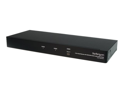 Le commutateur KVM USB DVI Dual-Link SV231QDVIUA 4 écrans et 2 ports permet à deux PC comprenant chacun quatre sorties vidéo DVI de partager des écrans, un microphone et un ensemble de haut-parleurs, un clavier et une souris, ainsi qu'un périphérique USB 2.0 supplémentaire.