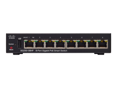 Cisco 250 Series SG250-08HP - Commutateur - intelligent - 8 x 10/100/1000 (PoE+) - de bureau - PoE+ (45 W) SG250-08HP-K9-EU