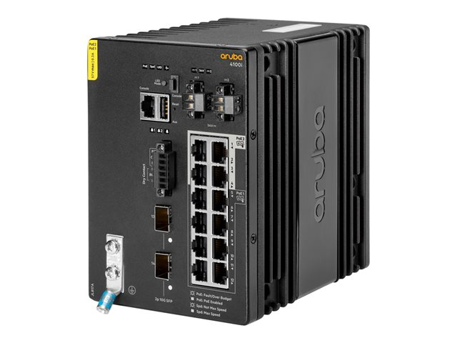 HPE Aruba 4100i - Commutateur - 8 x 10/100/1000 (PoE Class 4) + 4 x 10/100/1000 (PoE Class 6) + 2 x SFP+ - Montage sur rail DIN - PoE Class 4 / PoE Class 6