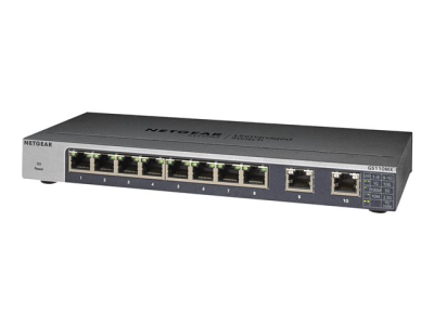 NETGEAR GS110MX - Commutateur - non géré - 8 x 1000Base-T + 2 x 100/1 000/2,5 G/5G/10G (liaison montante) - de bureau, Montable sur rack, fixation murale - Tension CC