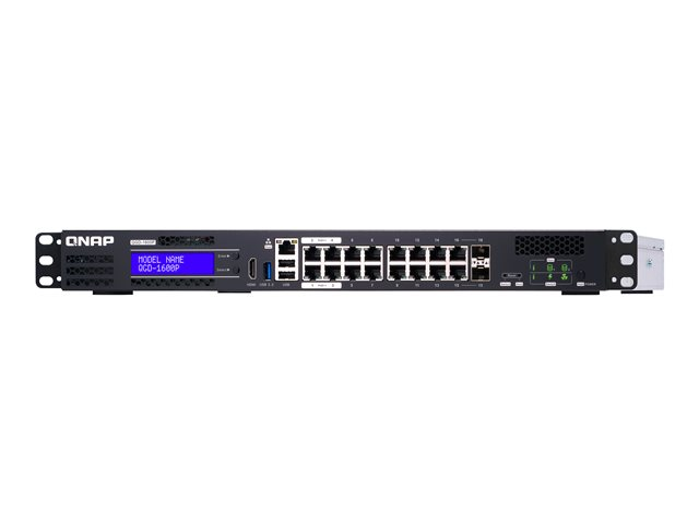 QNAP QGD-1600P - Commutateur - intelligent - 4 x 10/100/1000 (PoE++) + 10 x 10/100/1000 (PoE+) + 2 x combo Gigabit SFP (PoE+) - Montable sur rack - PoE++ (370 W)