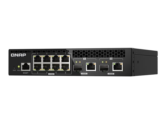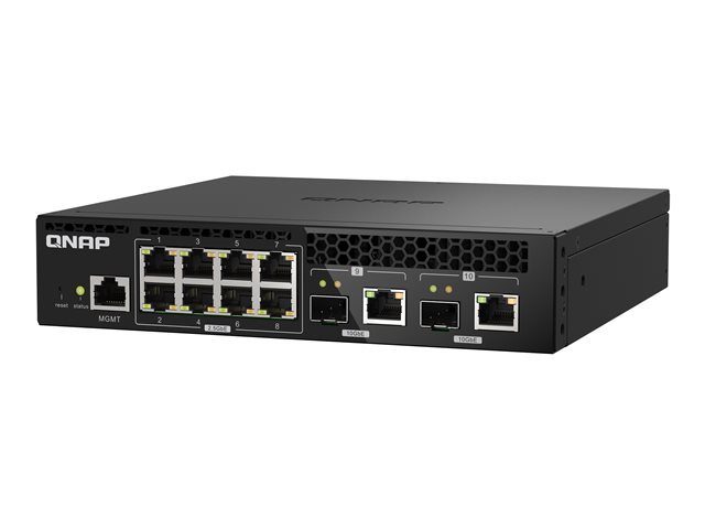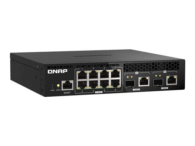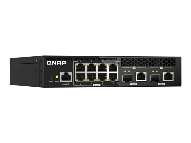 Le QSW-M2108R-2C est un switch web manageable de niveau 2 avec deux ports combo 10GbE SFP+/RJ45 et huit ports 2,5GbE. Prenant en charge la commutation de niveau 2 et la gestion des réseaux via une interface utilisateur Web conviviale, le QSW-M2108R-2C propose un déploiement flexible dans les environnements réseau hybrides à haut débit et fournit une solution de gestion des réseaux d'entrée de gamme. Grâce à une conception en demi-largeur, deux QSW-M2108R-2C peuvent être installés dans un espace de rack 1U pour économiser l'espace. Le QSW-M2108R-2C est compatible avec les technologies 10GbE et NBASE-T prenant en charge jusqu'à 5 vitesses afin de proposer des vitesses de transmission plus rapides en utilisant les câbles Cat 5e et 6a existants.